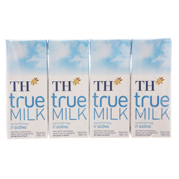 Tên sản phẩm: Sữa tươi tiệt trùng TH true Milk ít đường 180ml (lốc 4 hộp)